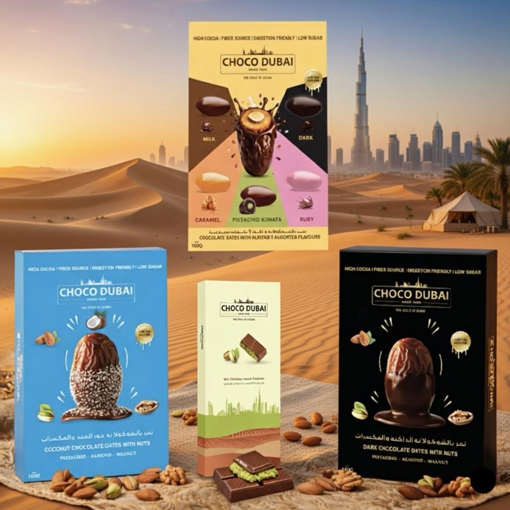 Choco Dubai Caramel Chocolate Dates with Nuts – Viral Dubai Edition (100g)