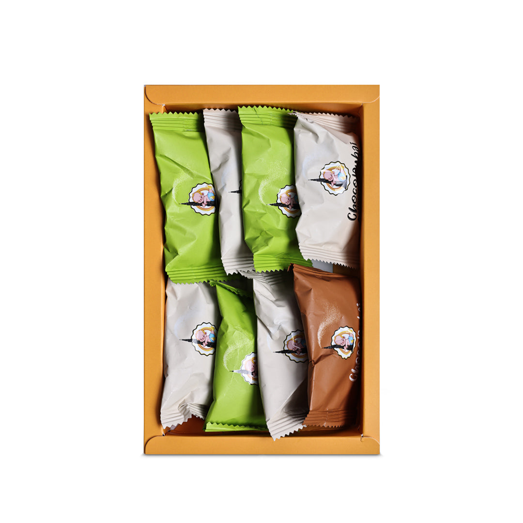 Choco Dubai Mango Chocolate Dates with Nuts feature premium dates generously stuffed with pistachio, almond, and walnut, then coated in smooth mango-flavored chocolate for a bright, fruity, and perfectly balanced flavor experience.
