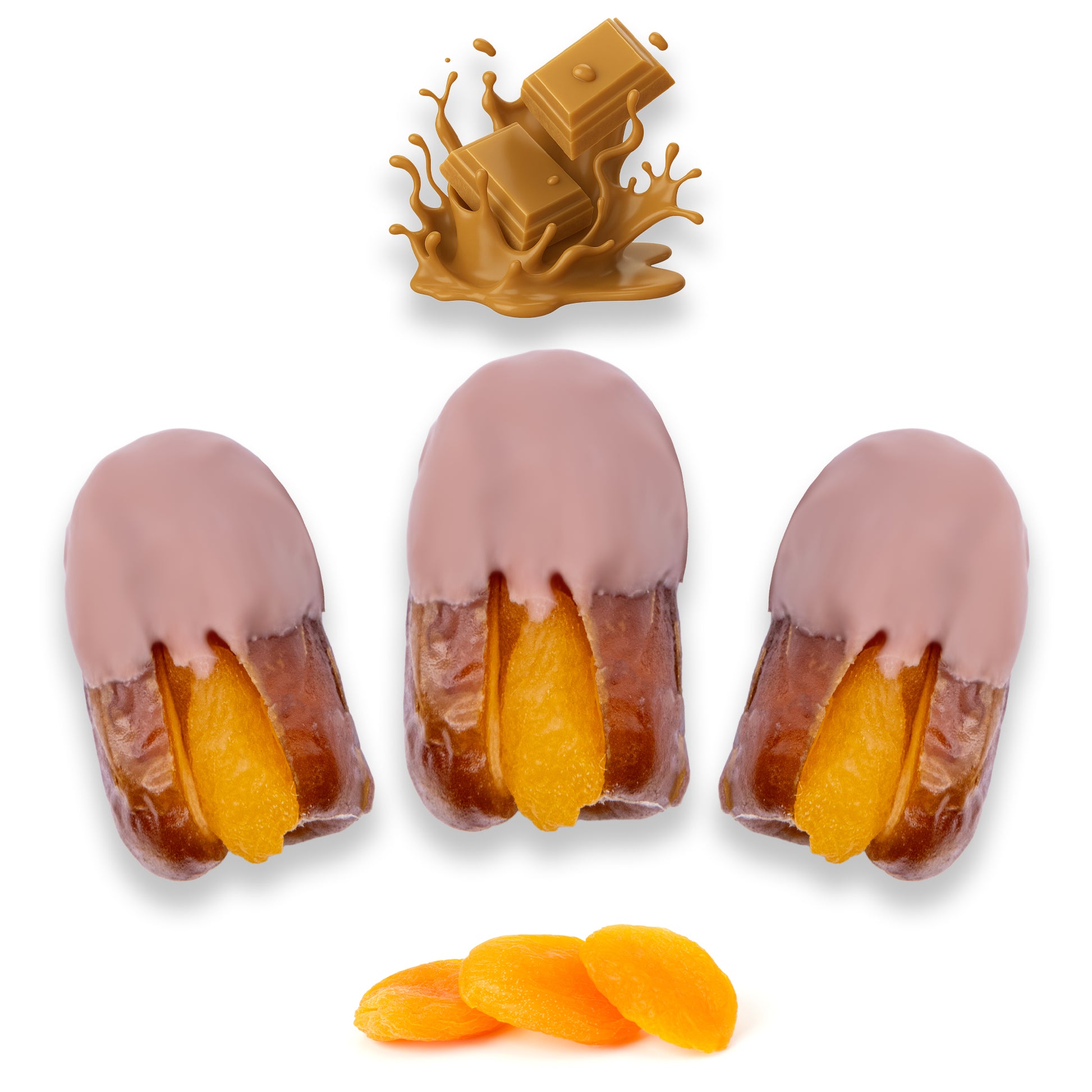 Caramel Chocolate Delight: Half-dipped in smooth, creamy caramel chocolate that melts in your mouth, adding a rich and velvety contrast to the dates’ natural sweetness.
