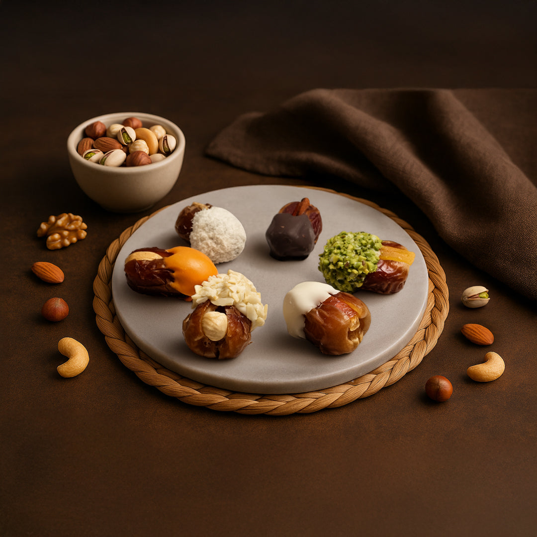 Indulge in the luxurious fusion of flavors with Choco Dubai's Dark & Caramel Chocolate Kunafa Dates. This unique 3-piece offer is perfect for those who crave a unique and delectable treat.